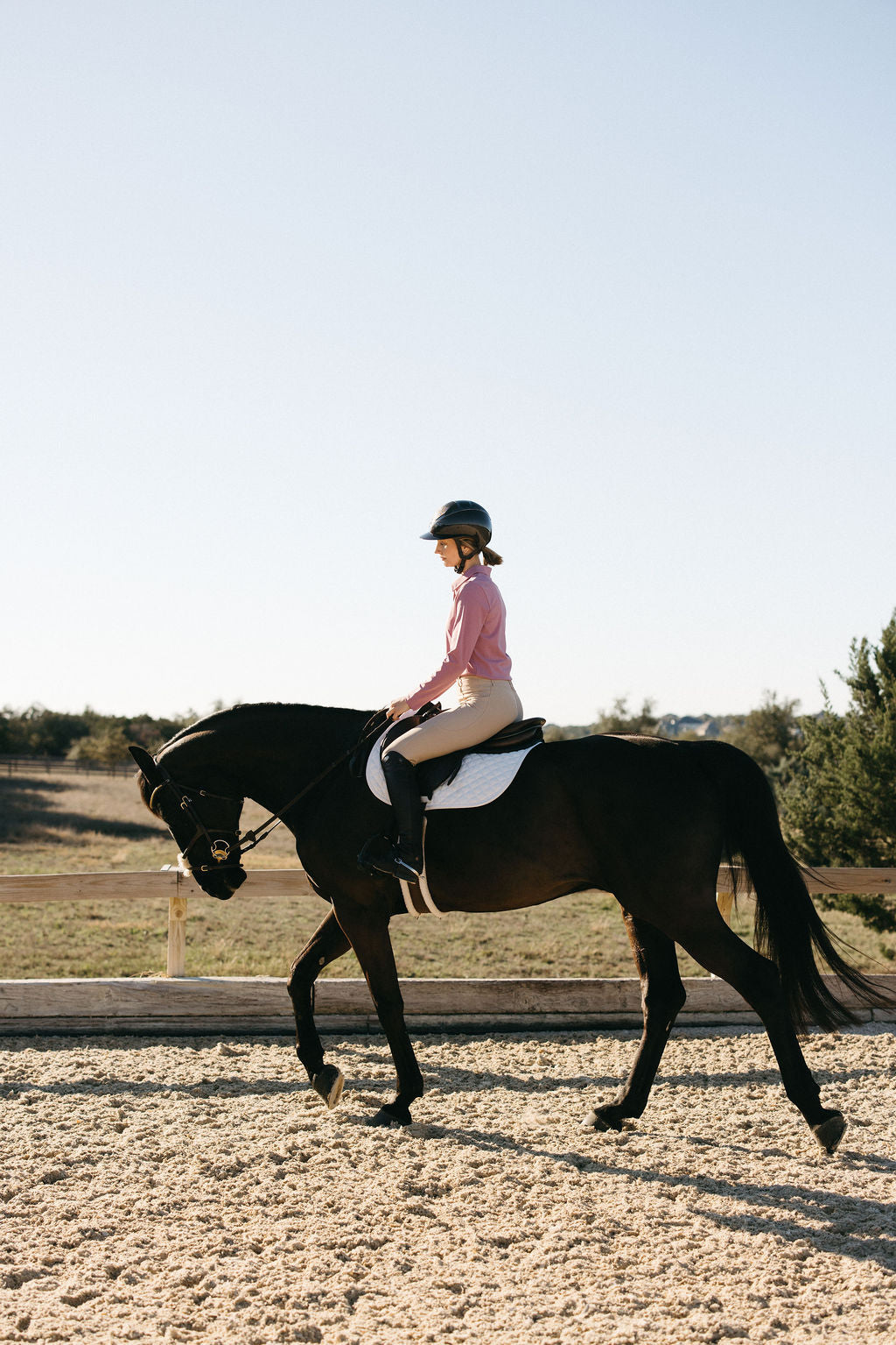 You deserve gear that works everywhere. In the saddle, at the barn, and everywhere your day takes you after. Fabric that performs, fits that move with you, details that matter whether you're riding or living.